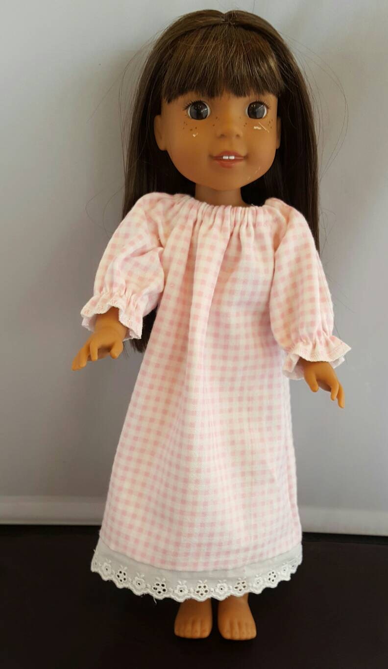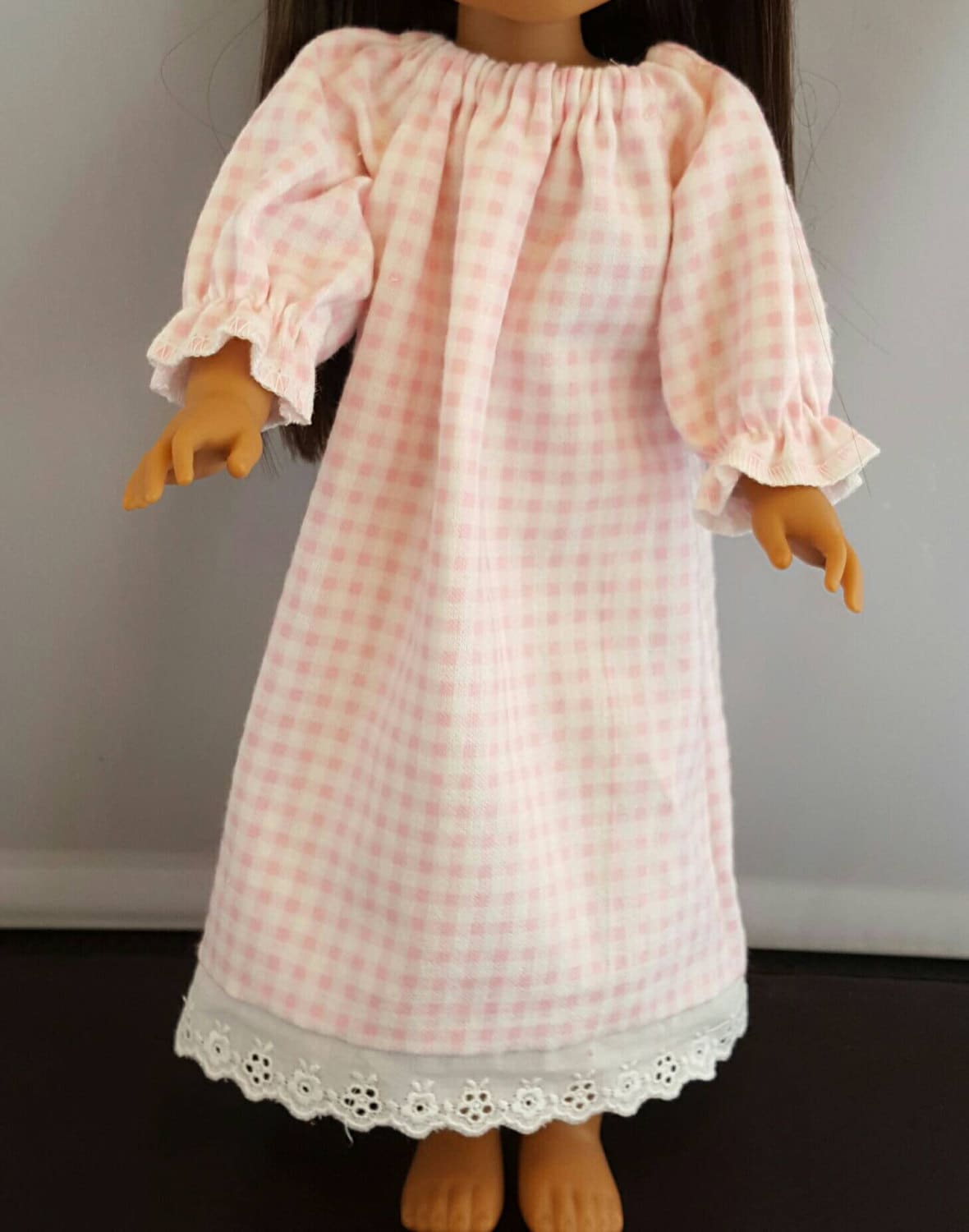 Flannel Nightgown with elastic neck and sleeves for easy on and off. I put lace at the hem. Choose 18 inch or 14 inch below.